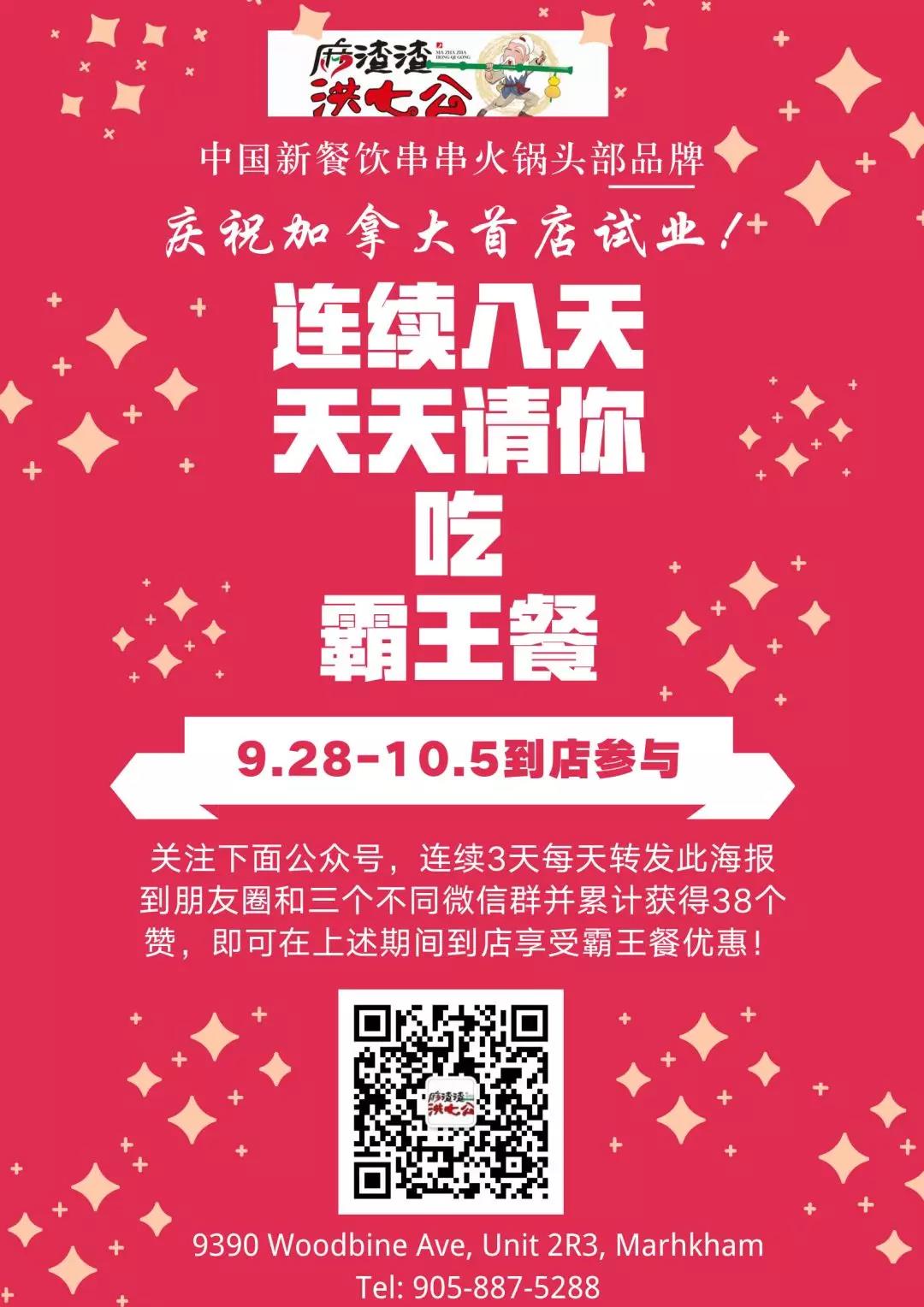 麻渣渣洪七公庆祝加拿大首店试业请你吃串串霸王餐
